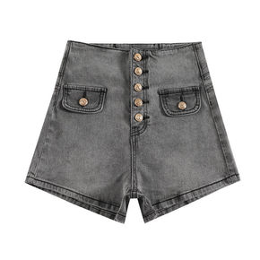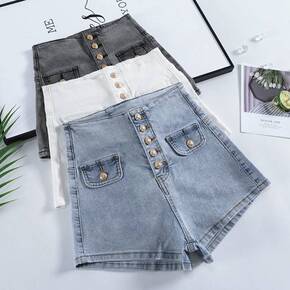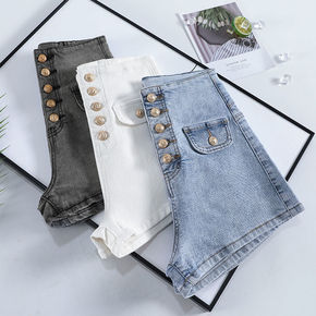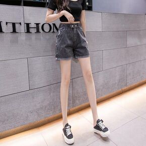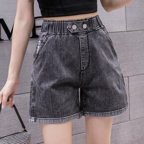 2022弹力高腰牛仔短裤网红同款字裤夏天外穿阔腿小...