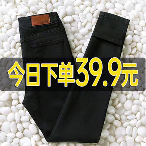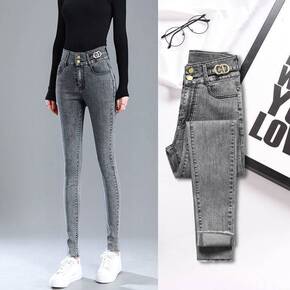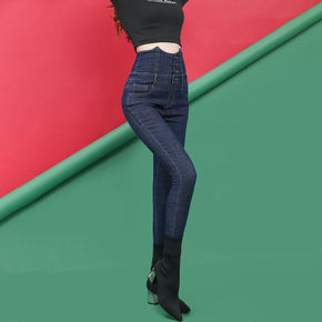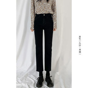 高腰加绒牛仔裤女2022年新款春秋季修身显瘦黑色紧...