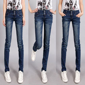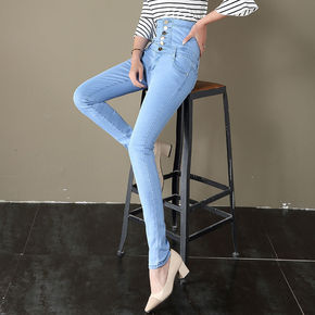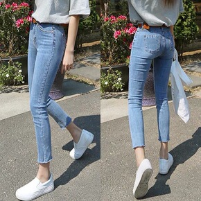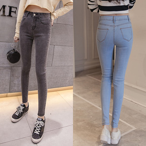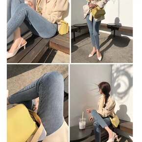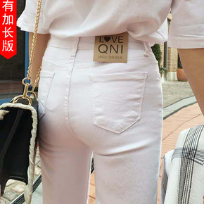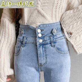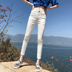 白色小脚牛仔裤女高腰秋冬新款九分小个子显瘦显高加绒...