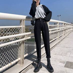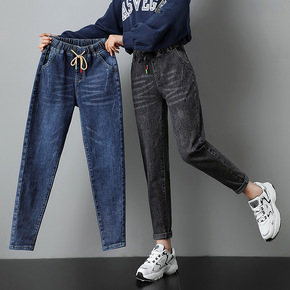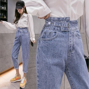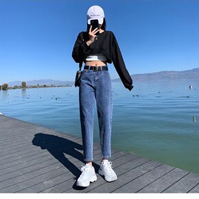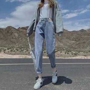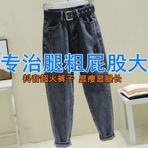 小个子哈伦牛仔裤女2022新款春季宽松显瘦萝卜裤松...