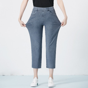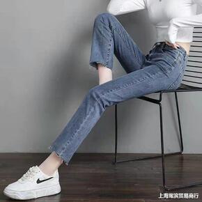 2022春夏新款大码高腰牛仔裤女显瘦胖韩版长裤修身...