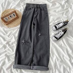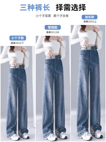 高腰阔腿牛仔裤女春秋2022新款宽松直筒垂感显瘦小...