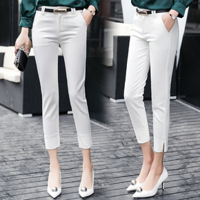 西装休闲裤女2021春秋新款高腰修身显瘦九分小脚黑...