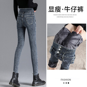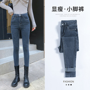 时尚女秋冬2021新款高腰加厚休闲裤显瘦黑色小脚裤...