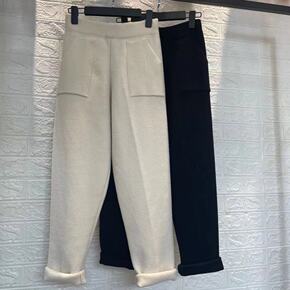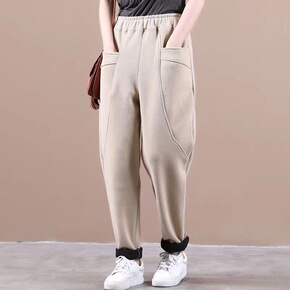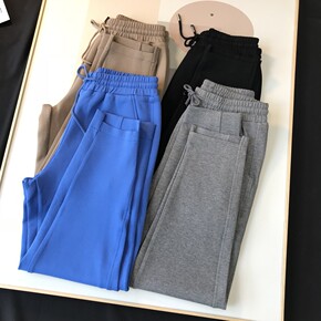 2021秋冬新款韩版加厚哈伦裤针织长裤女纯色休闲宽...