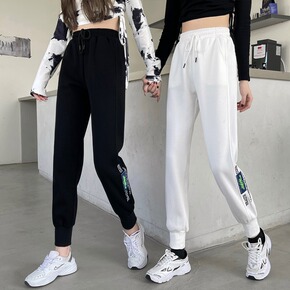 实拍 束脚休闲运动裤女2021秋季新款宽松显瘦条纹...