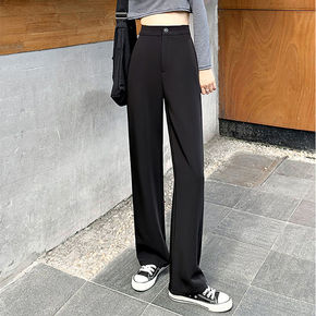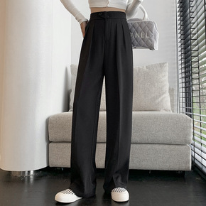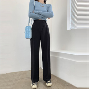 YUYUREAL-21SS 黑色裤子女高腰显瘦直筒...