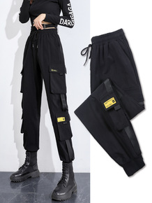 网红 2021秋季韩版时尚 黑色修身裤子女高腰弹力...