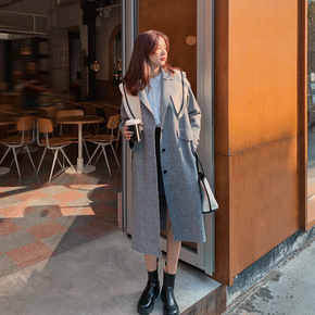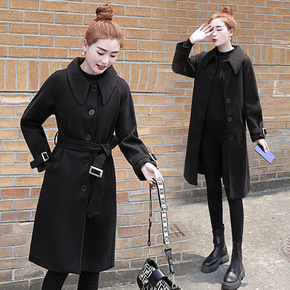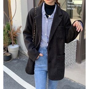 2021秋季韩版简约宽松翻领呢子百搭气质小个子长袖...