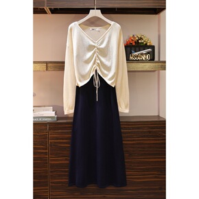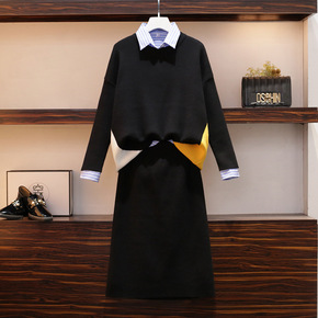货号:4942 上市年份/季节:秋季 风格:通勤 颜色:条纹衬衣、针织毛衣+针织裙 尺码:大...