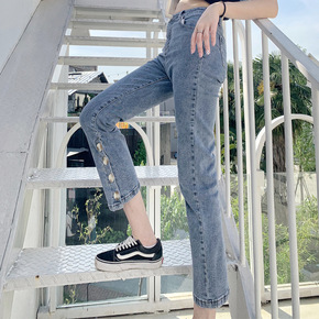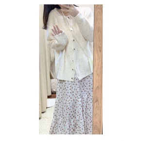 精品社 女装2021新款潮早秋针织衫纽扣装饰薄款上...