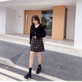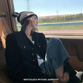 2021年新款早秋上衣小香风高级感美式欧货炸街黑色...