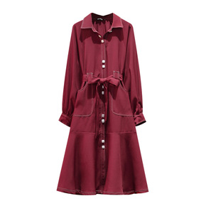 初秋女装2020新款红色中长款风衣小个子流行大码工...