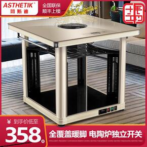 阿奇特电暖桌取暖方桌多功能家用电暖烤火桌带电陶炉电...