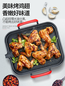加厚铸铁条纹烤肉盘无涂层不粘牛排煎锅家用牛扒烧烤平...