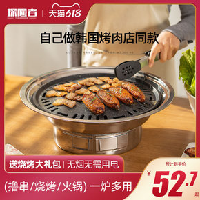 韩式家用烤肉炉 无烟木炭烧烤炉 户外铁板商用烧烤烤...
