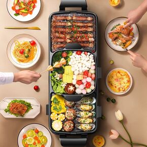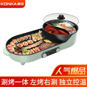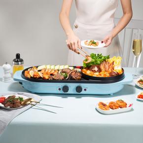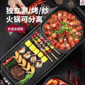 烤涮一体锅大号多功能鸳鸯火锅电烧烤炉家用电烤盘无烟...