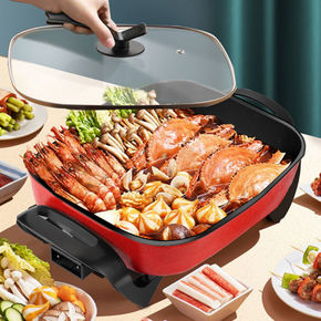 家用电烧烤炉烤盘烤肉不粘电热火锅炒菜蒸煮炖涮多功能...