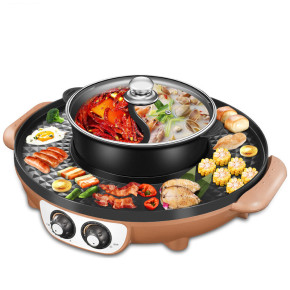 火锅烧烤一体锅烤肉盘电烤盘烤涮机。家用多功能无烟不...