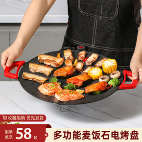 韩式电烤盘家用多功能烧烤炉麦饭石烤肉锅圆形烧烤盘煎...