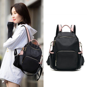 防泼水防盗牛津布背包时尚撞色尼龙双肩包女轻便大容量...