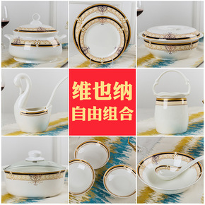 花语系列 骨瓷餐具菜盘 无铅陶瓷盘子碗 微波炉适用...