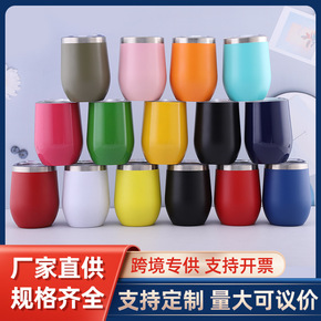 厂家亚马逊12oz蛋壳杯鸡蛋杯带盖304不锈钢彩虹...