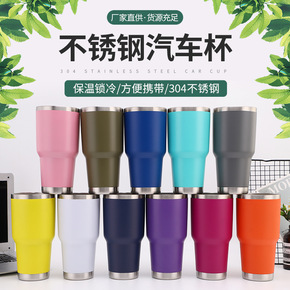 新款双层不锈钢30oz汽车保温杯 啤酒冰霸杯子便携...