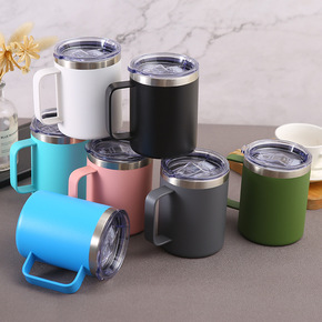 新款12oz手柄马克杯喷塑时尚不锈钢咖啡杯便携双层...