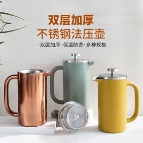 不锈钢304双层隔热法压壶马卡龙色咖啡壶过滤冲茶器...