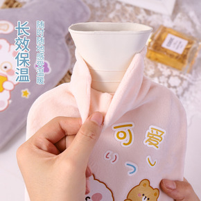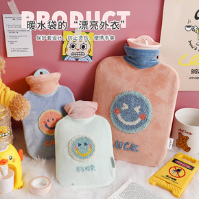 400ML圆形热水袋注水可爱少女心毛绒布套暖水袋 ...