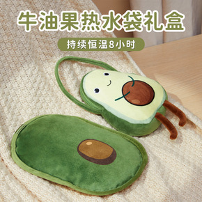牛油果热水袋充电式暖手宝电暖宝宝敷肚子女生可爱毛绒...