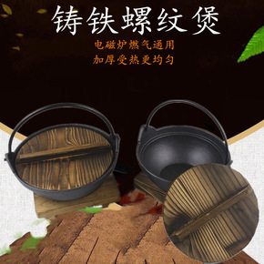螺纹煲日式铸铁锅手挽锅煲仔 火锅汤锅铁锅酒精炉火锅...