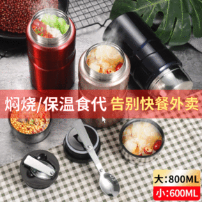 新款304不锈钢焖烧壶 办公真空饭盒保温焖烧罐学生...