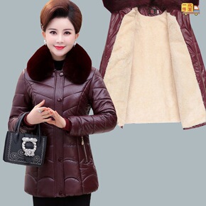 中老年冬装皮衣加绒加厚短款棉服中年女士pu棉衣妈妈...
