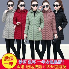 女士棉服女中长款2021冬季新款韩版中年妈妈棉衣轻...