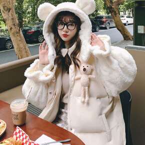 云朵棉服送小熊/仿羊羔毛拼接棉服女2021新款韩可...