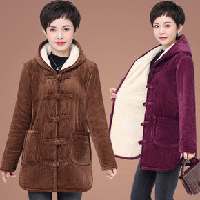 爱博尔中老年秋冬季棉衣女妈妈冬装洋气绣花连帽加绒棉...