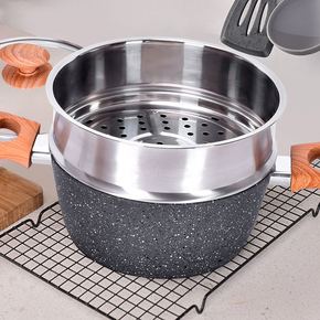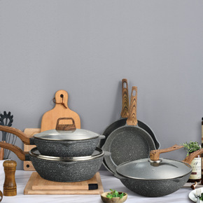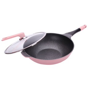 厂家直销韩国麦饭石粉锅 家用无油烟不粘锅铝制炒锅不...