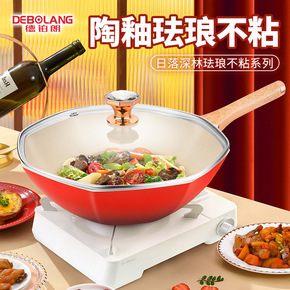 条纹铝制深煎锅火山岩炒多功能家用不粘锅炒菜锅电磁炉...