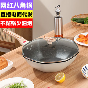 网红八角锅不粘锅家用麦饭石炒锅电磁炉燃气平底锅煎锅...