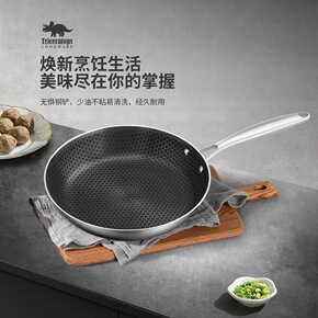 平底锅不粘锅家用不锈钢深煎锅牛排烙饼煎饼电磁炉燃气...