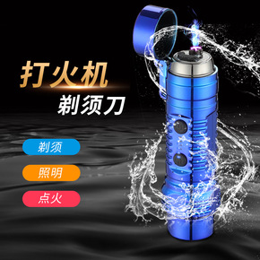 新款个性礼品充电打火机剃须刀电弧点烟器照明灯多功能...