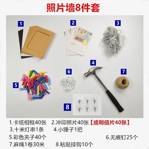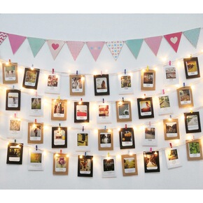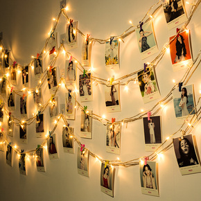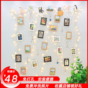 网红照片墙装饰夹子麻绳冲印打印相片少女心悬挂卧室墙...