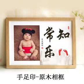 抖音知足常乐字画手足印脚印宝宝小脚丫婴儿周岁纪念品...