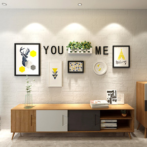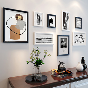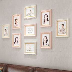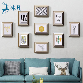 创意北欧清新七寸照片墙相框组合挂墙背景墙9框玄关过...
