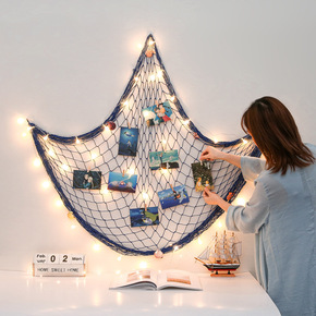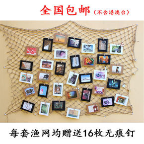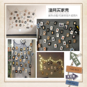 渔网照片墙创意网格麻绳夹子挂墙 墙上背景相框墙面i...