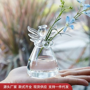 北欧创意透明玻璃水养绿植插花花瓶水果茶店柜台桌面装...