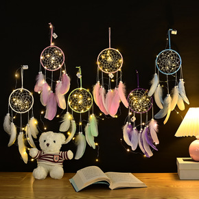 家居装饰少女心房间挂件简单捕梦网小夜灯手工编织可爱...