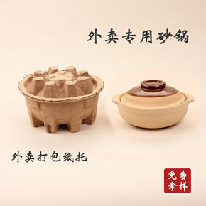 鲍汁捞饭砂锅商用纸托打包盒一次性外卖专用砂锅元五小...